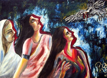 Original contemporary artworks by Rekha Rai exploring social issues through the lens of social realism.