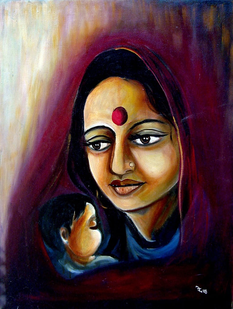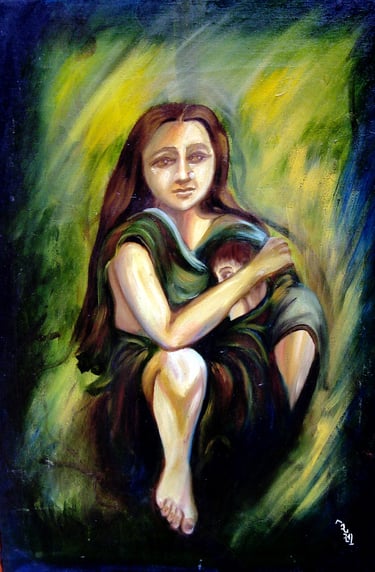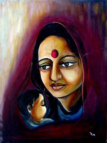 Mamta captures a mother holding her newborn close to her heart, her eyes flowing with selfless love, warmth, and quiet prayers, as the child becomes her world, her hope, and the promise of new colors yet to unfold in her life