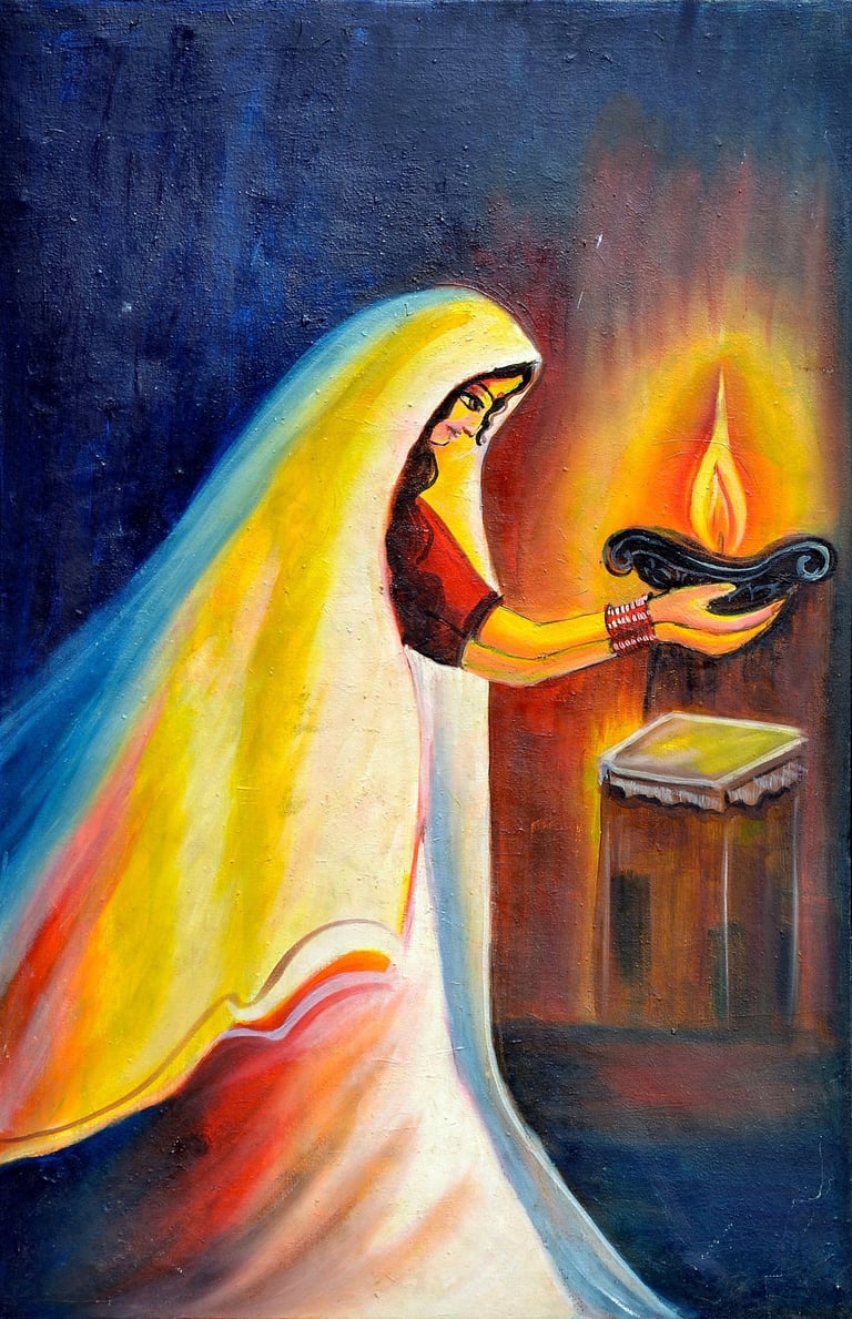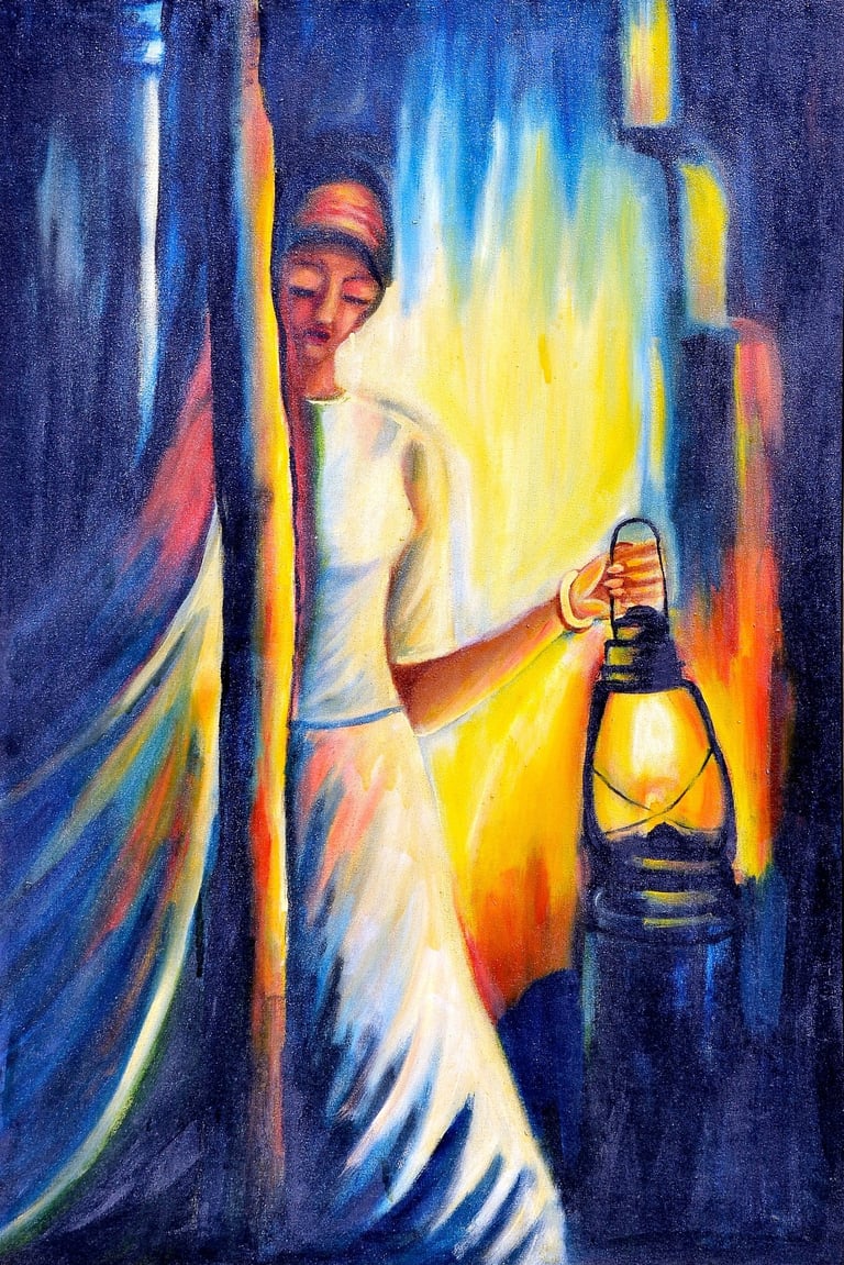 The painting eflects the quiet selflessness of a woman who carries love, care, and warmth into a home, gently illuminating its spaces with nurturing devotion and emotional light..